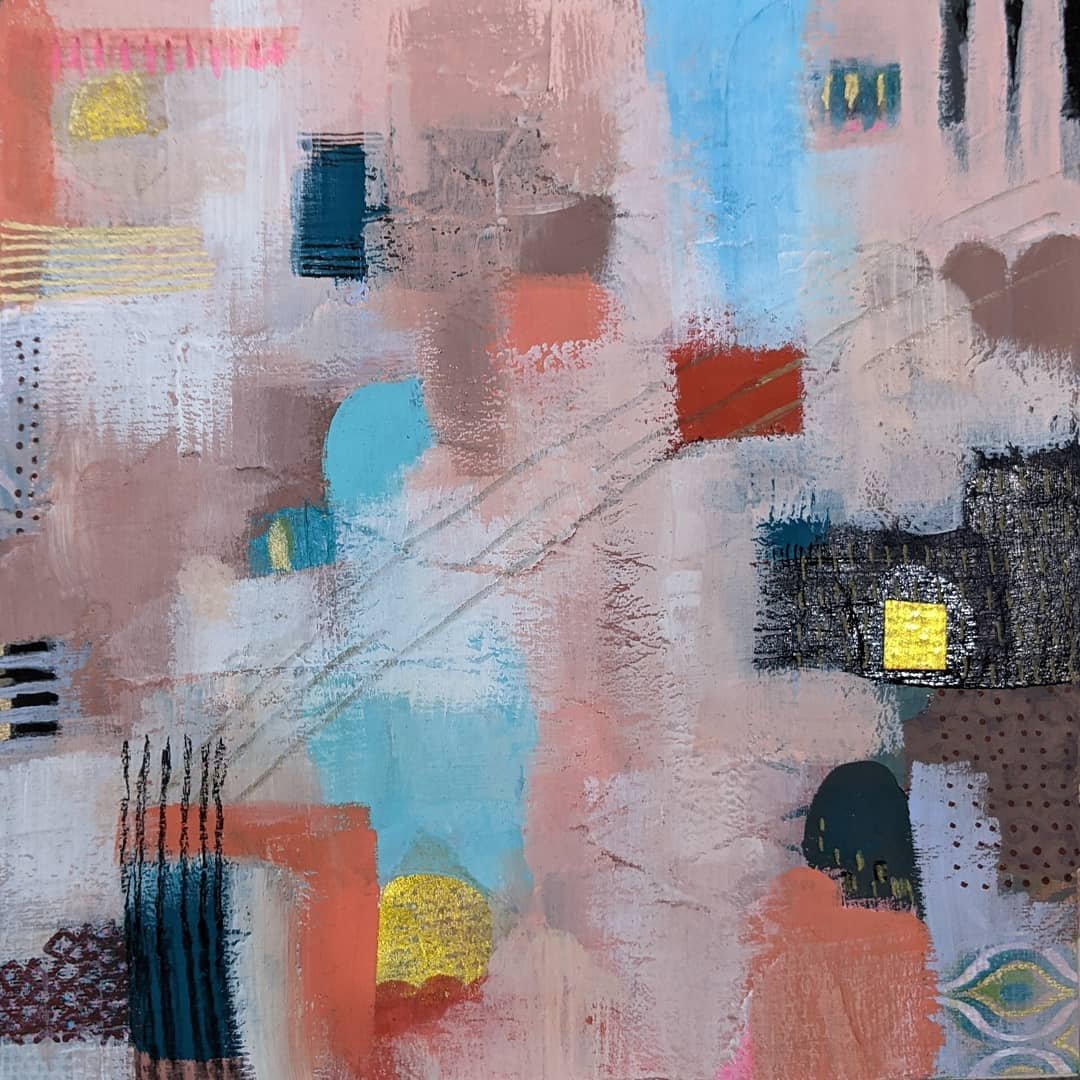 I spent the last three days playing with these cityscape paintings based on a class from the beautiful painter Faith Evans Sills, “Luscious Layered Cityscapes”.