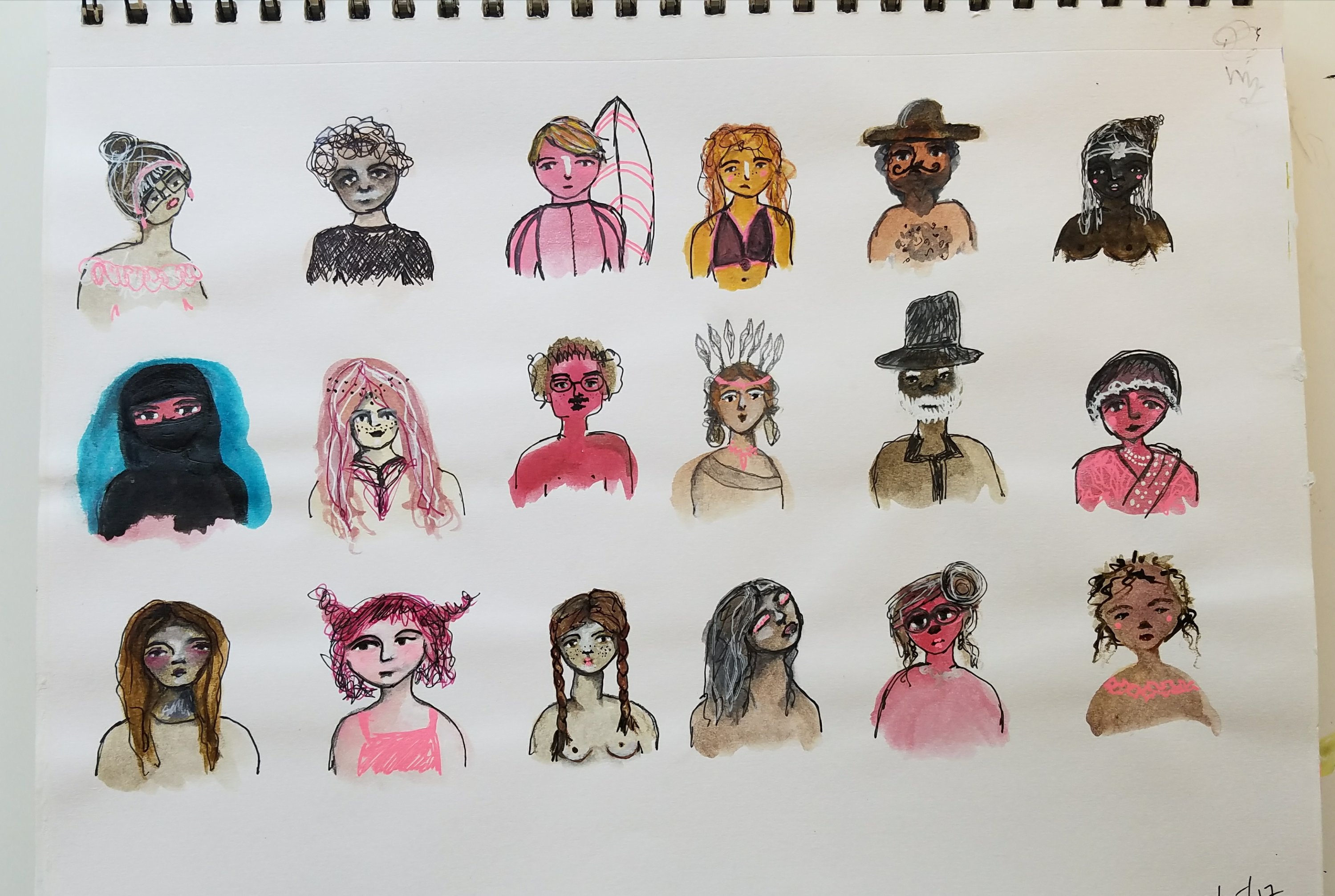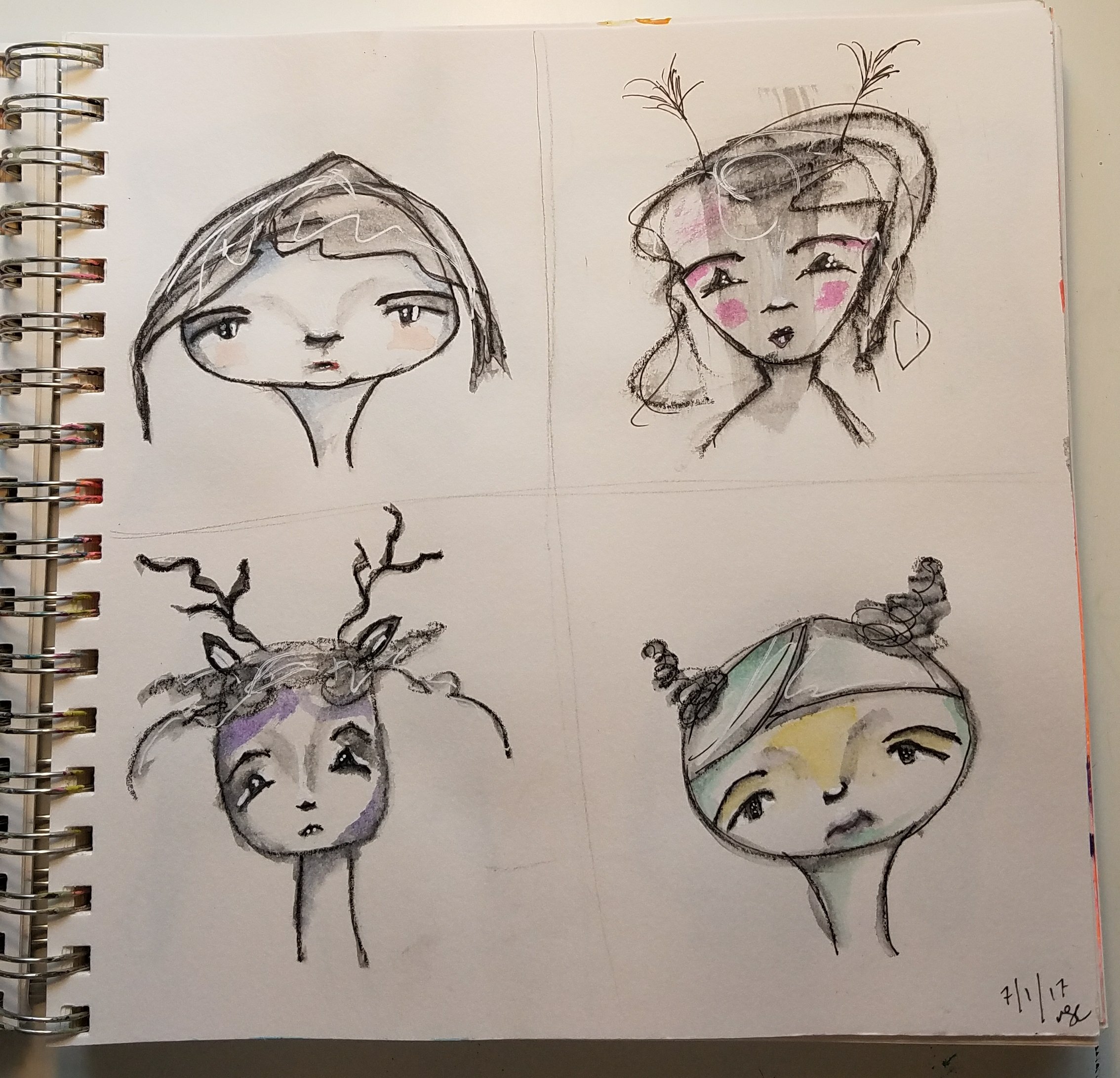 And look what’s been coming out of that stillnesss… so many faces! Who are these people? I think they are my muses. My strange, peculiar muses full of the spirit of nature, animals, and sacred symbolism, from deep in my imagination, deep in the compost.